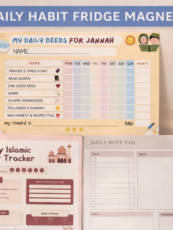 We create essentials that help families live with remembrance and reflection, from the way children learn their first duas to how mothers record gratitude or pilgrims prepare for Umrah.