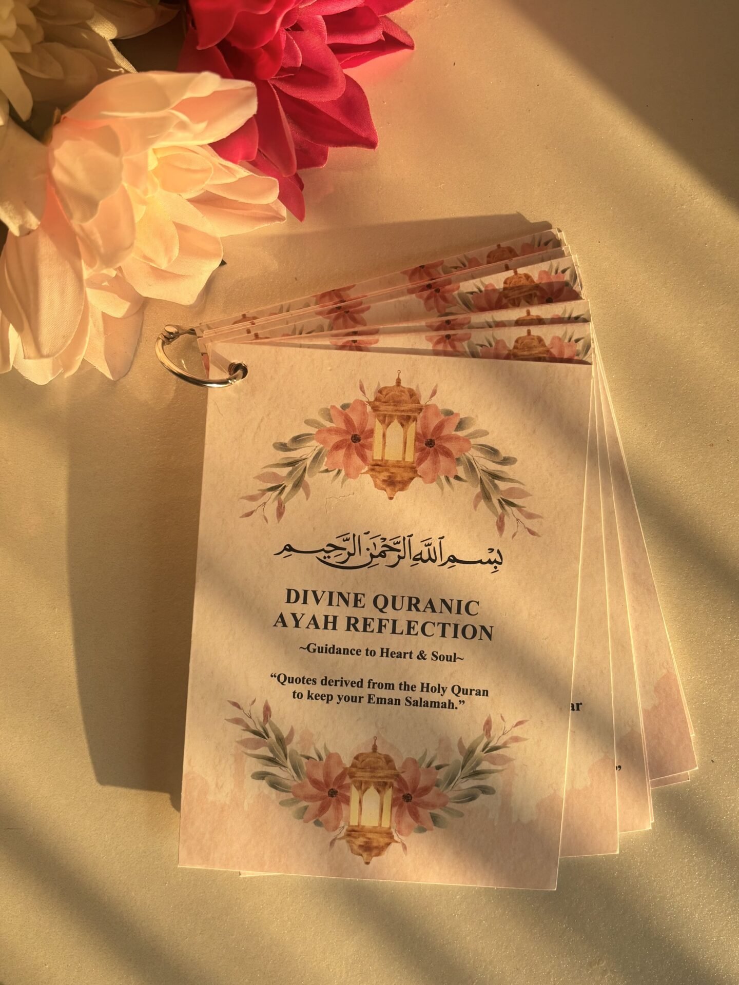 The Divine Quranic Ayah Reflection Cards are a soulful collection of verses thoughtfully curated to inspire reflection, healing, and daily connection with the Qur’an.