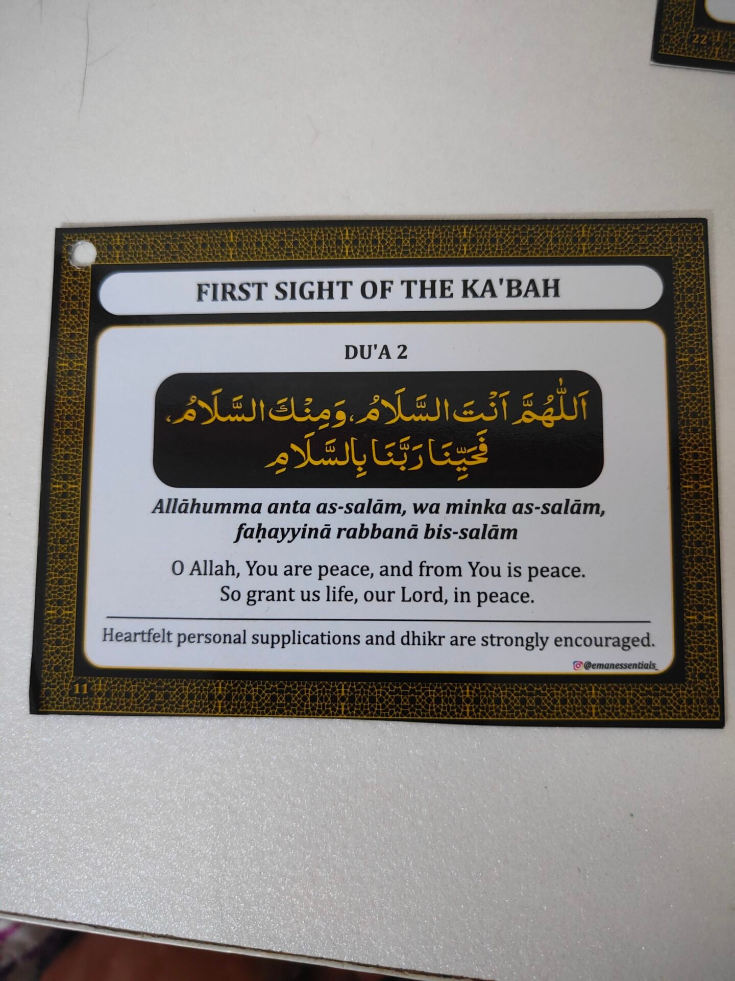 Designed in a Kaaba-inspired palette of black, gold, and white, these cards evoke reverence and serenity — keeping you spiritually centered from Ihram to Tawaf and beyond.